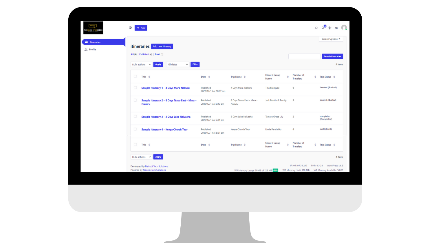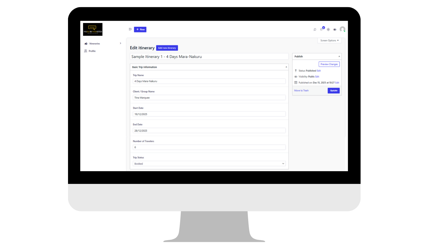 Whether you’re organizing local trips, multi-day safaris, or mission travel plans, our system makes itinerary creation smooth and intuitive.